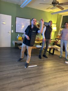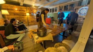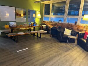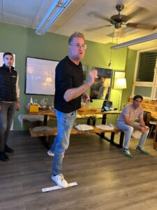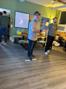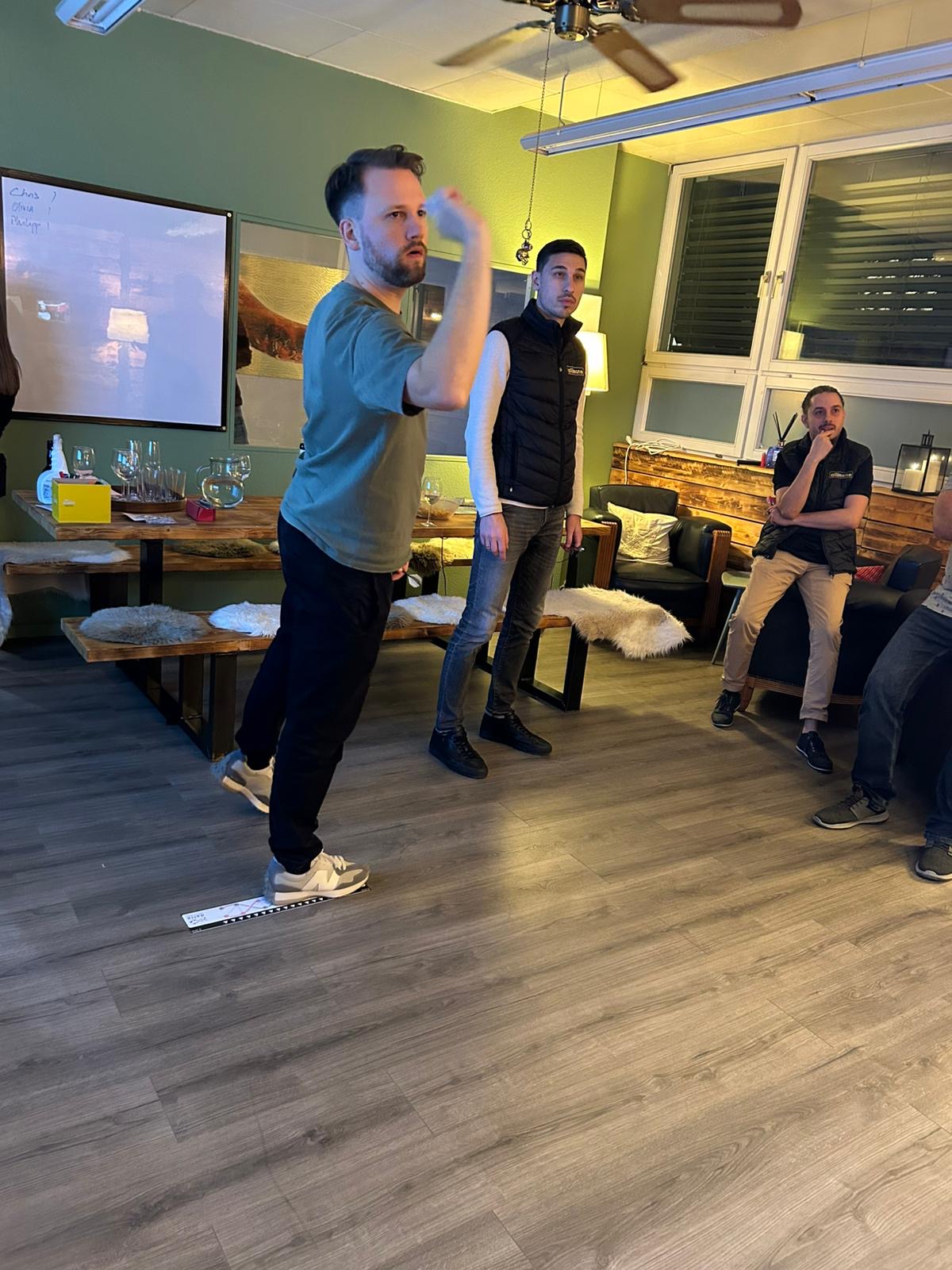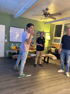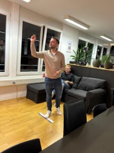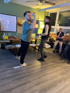 Gespielt wird im Doppel (immer zwei Spieler:innen eines Unternehmens)